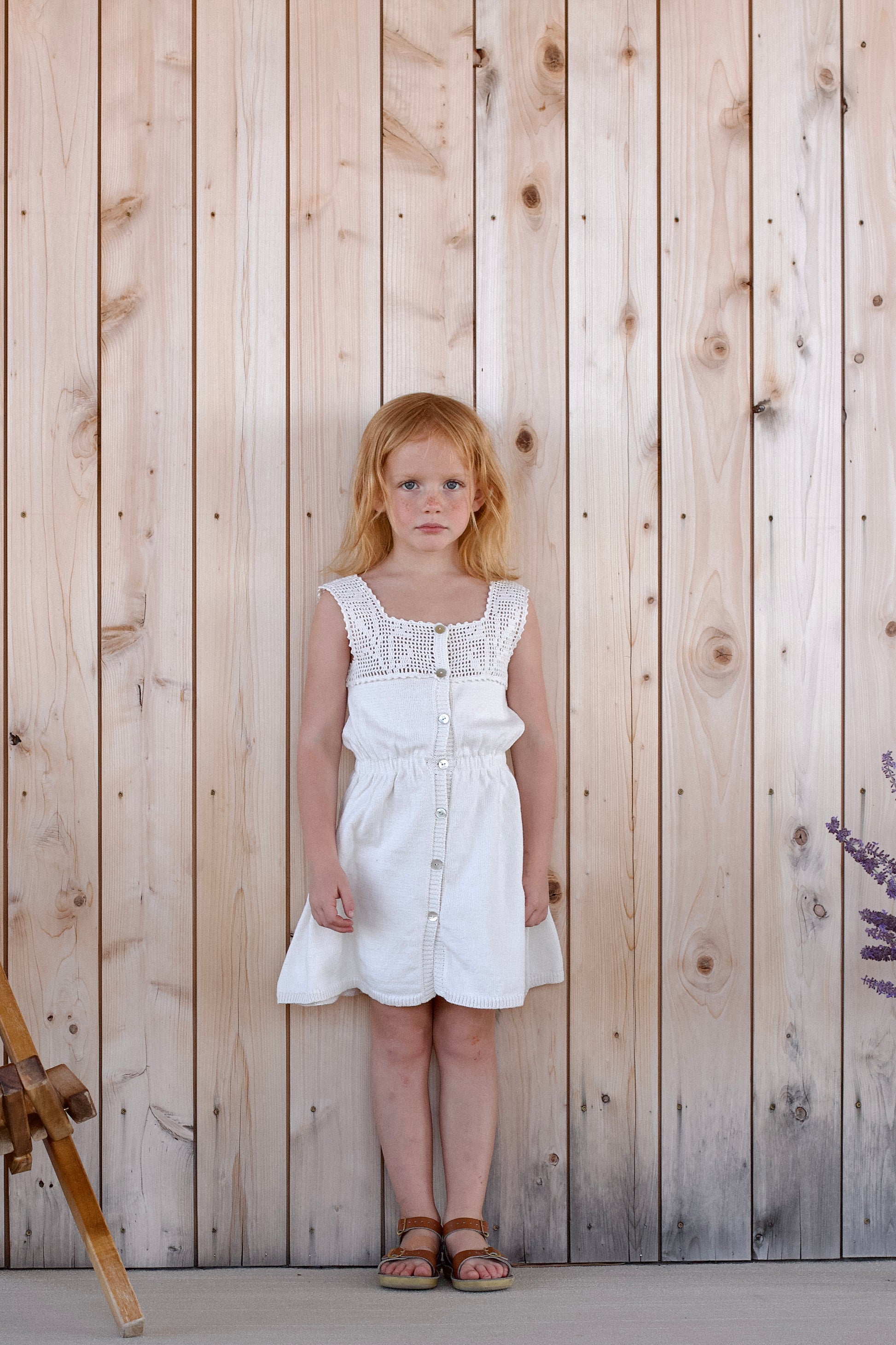 a stunning knit dress with crochet water-iris floral yoke detailing