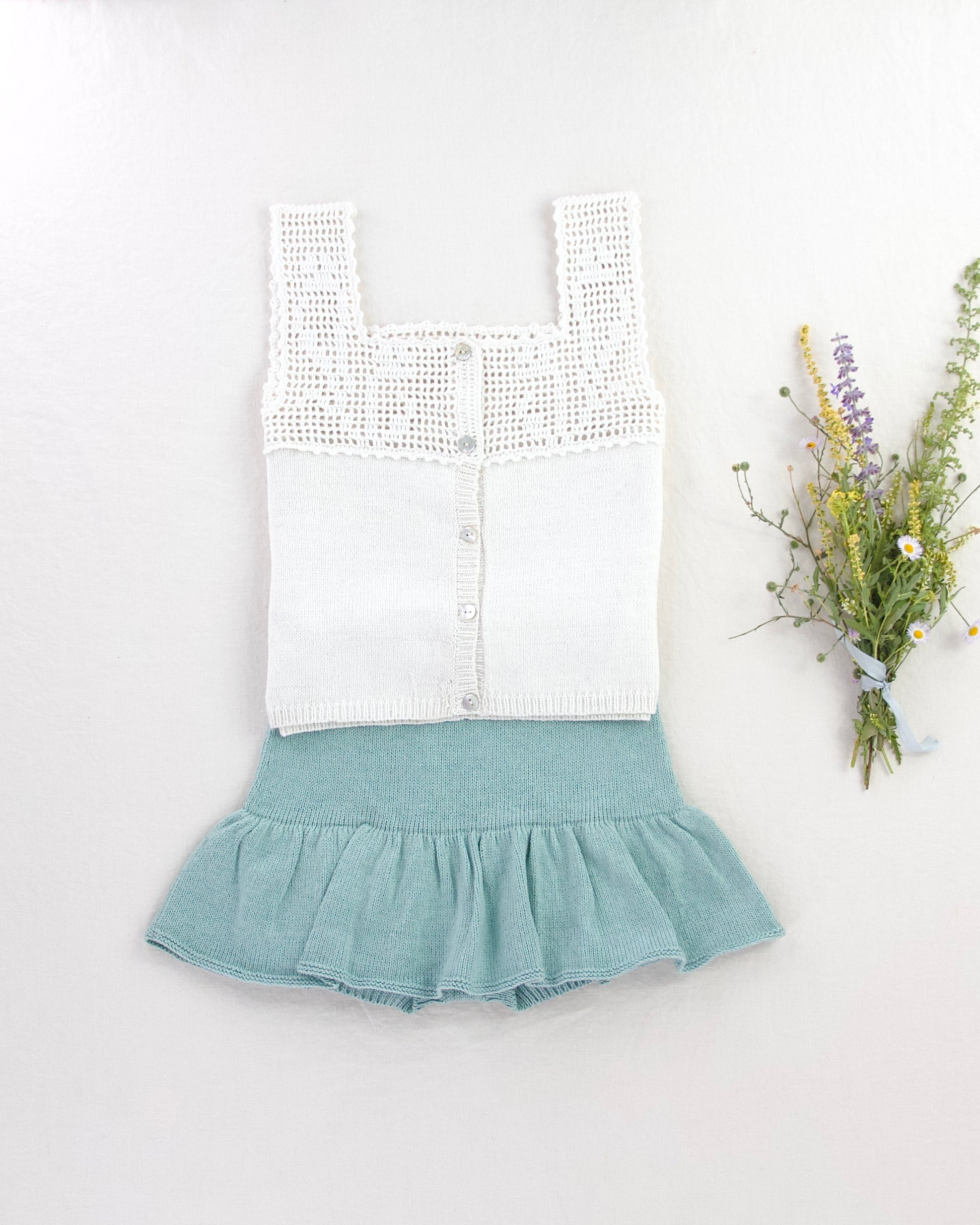 a stunning knit tank with crochet water-iris floral yoke detailing