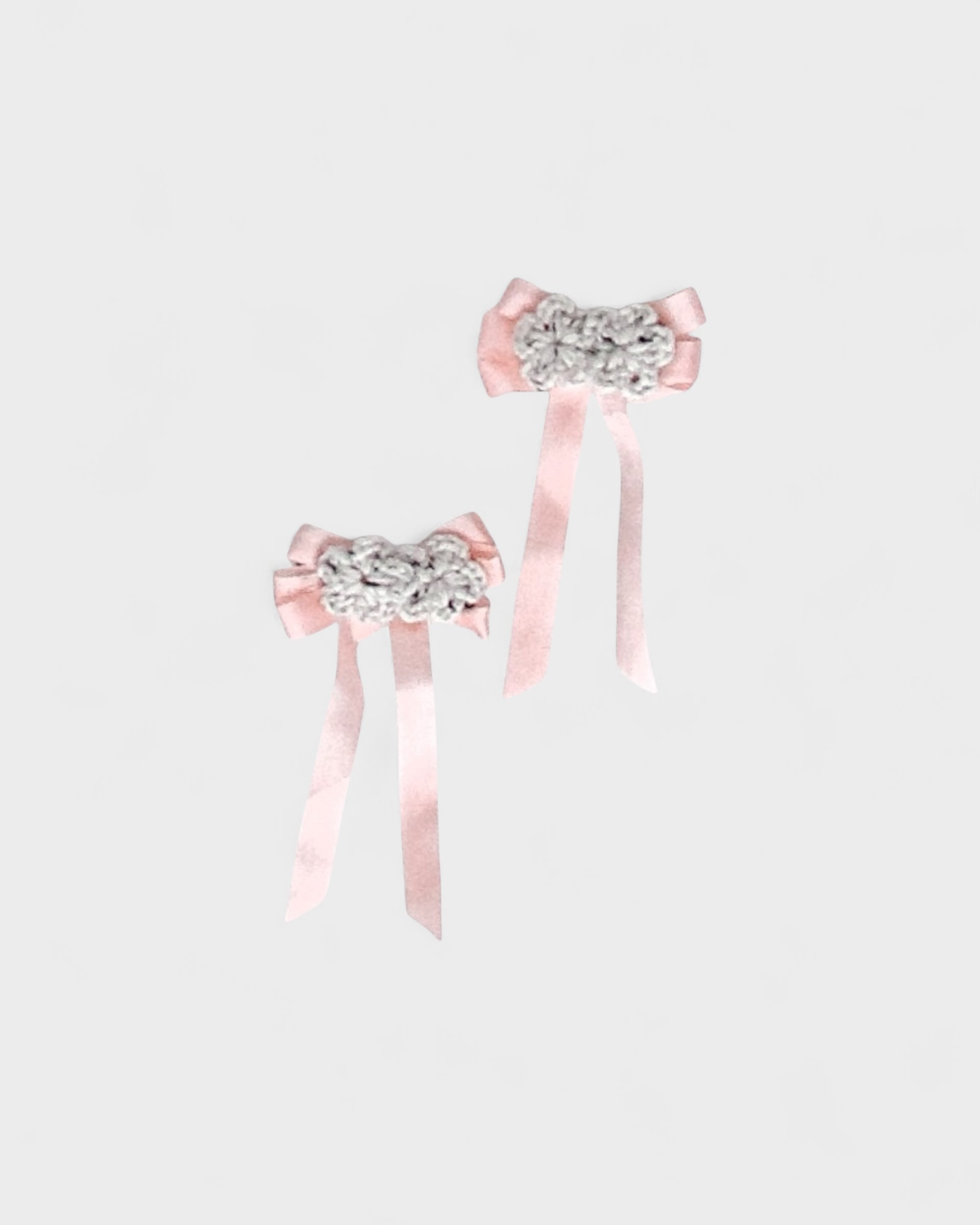 a pair of vintage-inspired flower crochet hairclips to complete the look