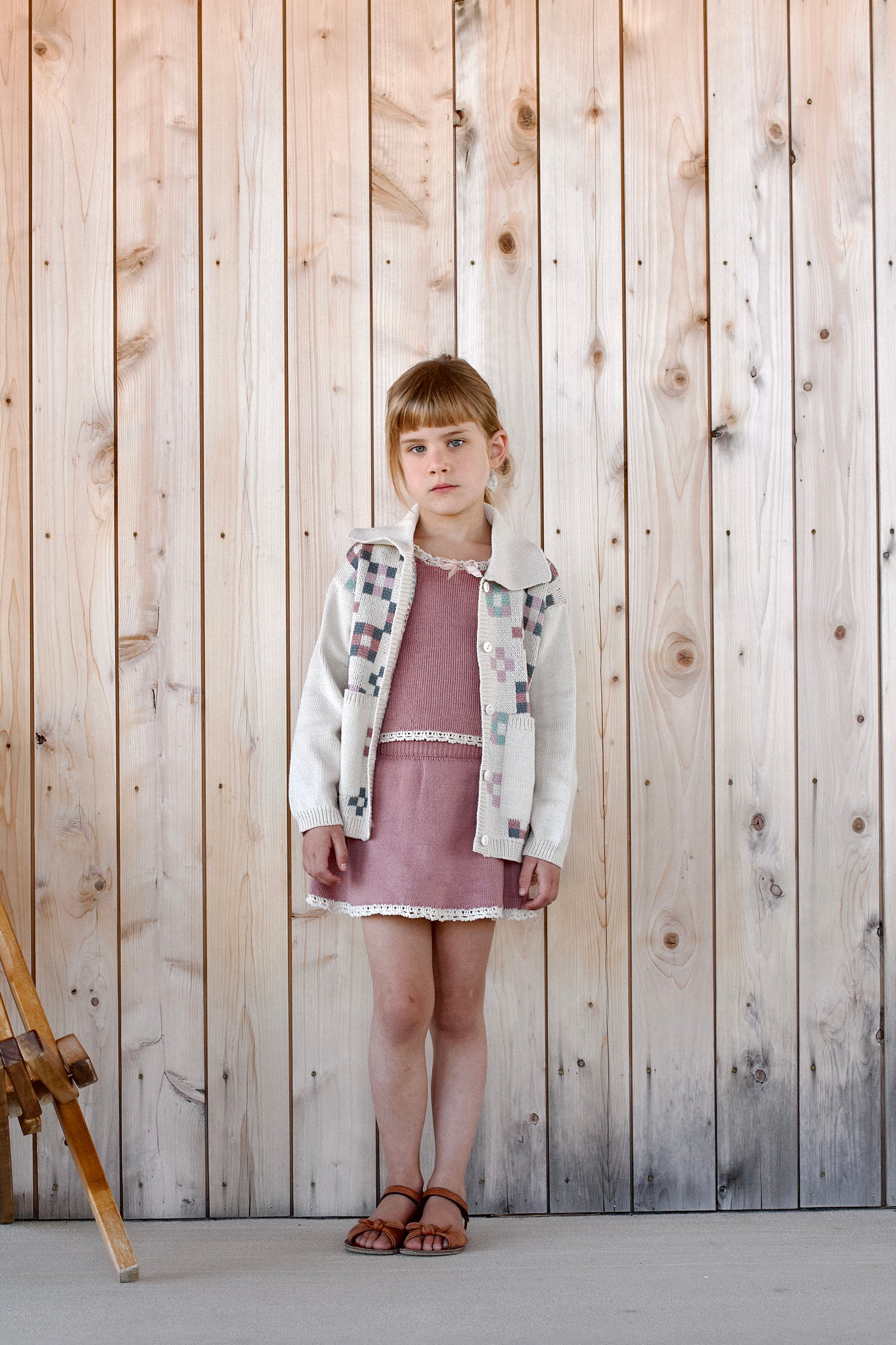 model is 6 years old, 46 inches, 40 pounds, wearing size 6