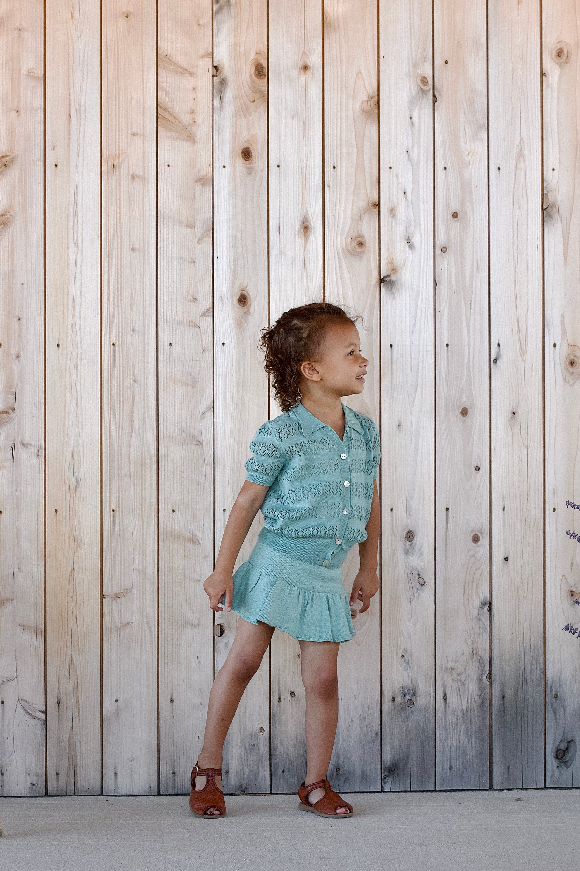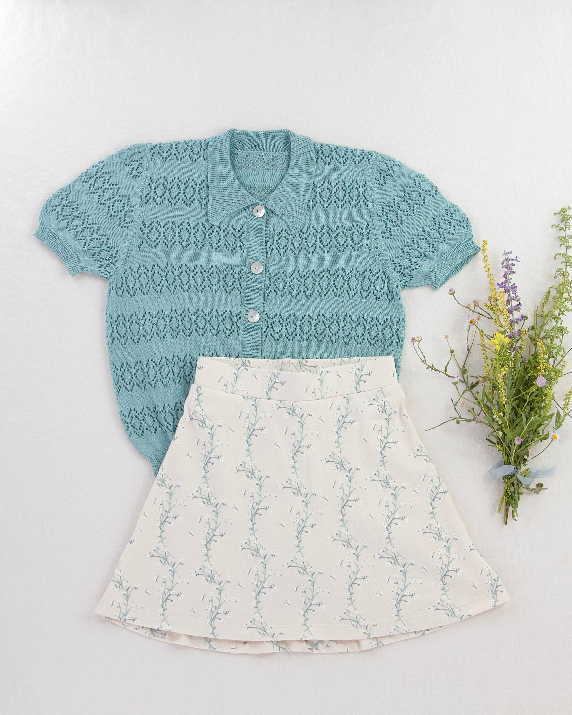 a delicate lace-weight knit cardigan with mother of pearl buttons