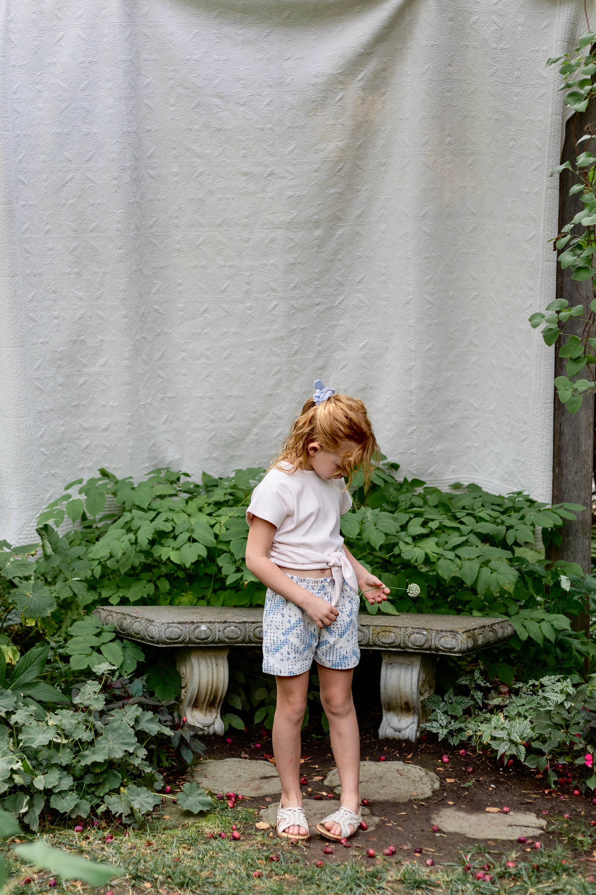 paper-bag style shorts with elastic waistband and hidden side pockets