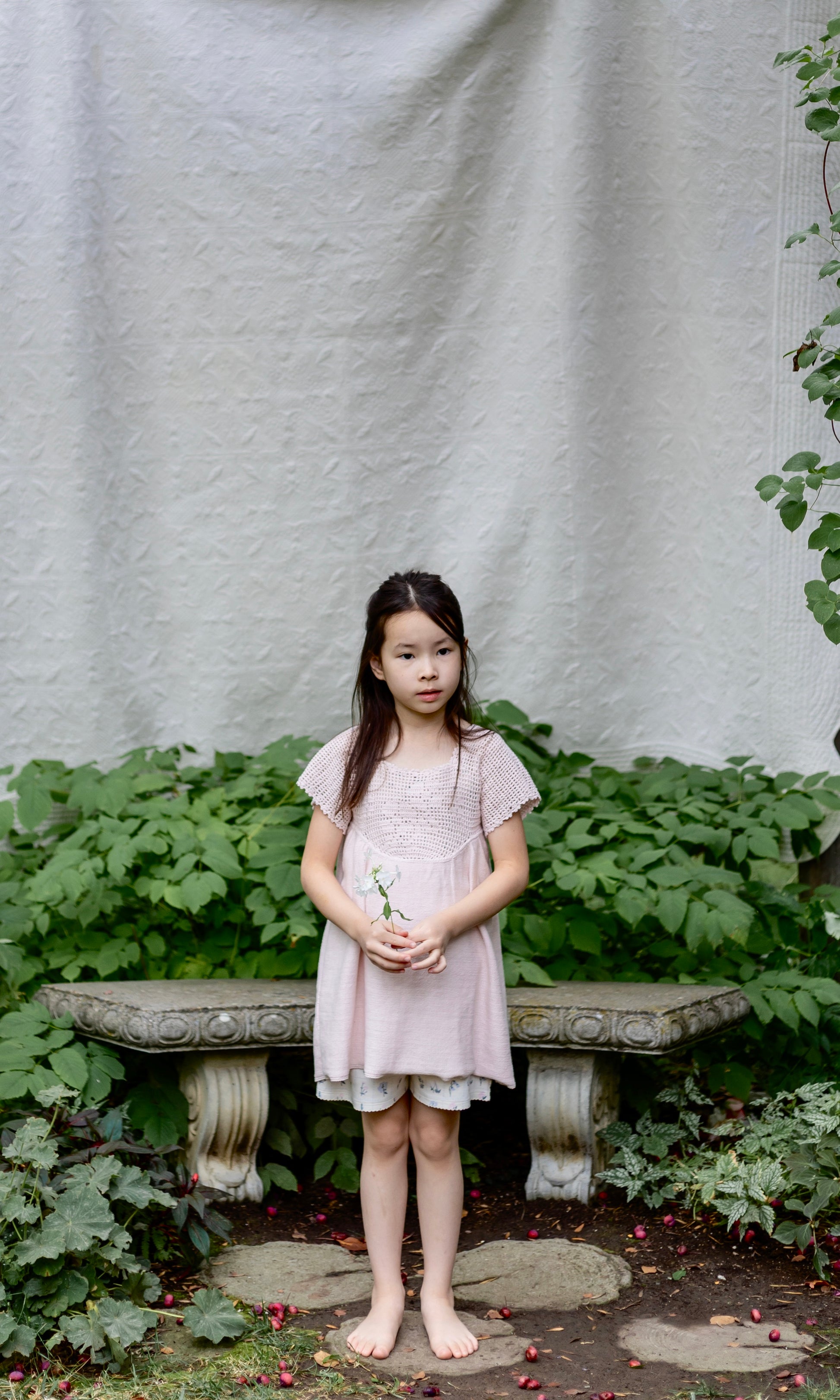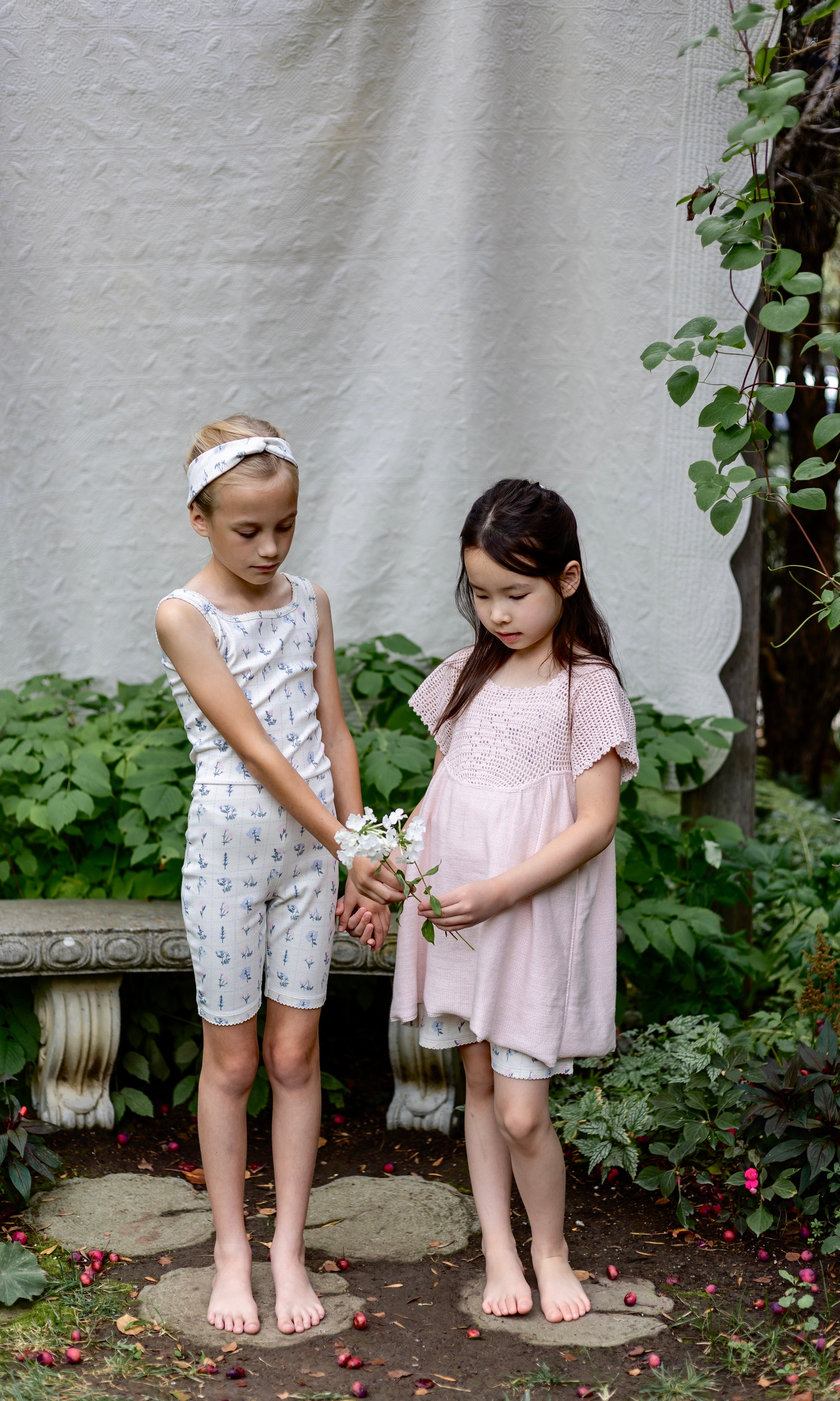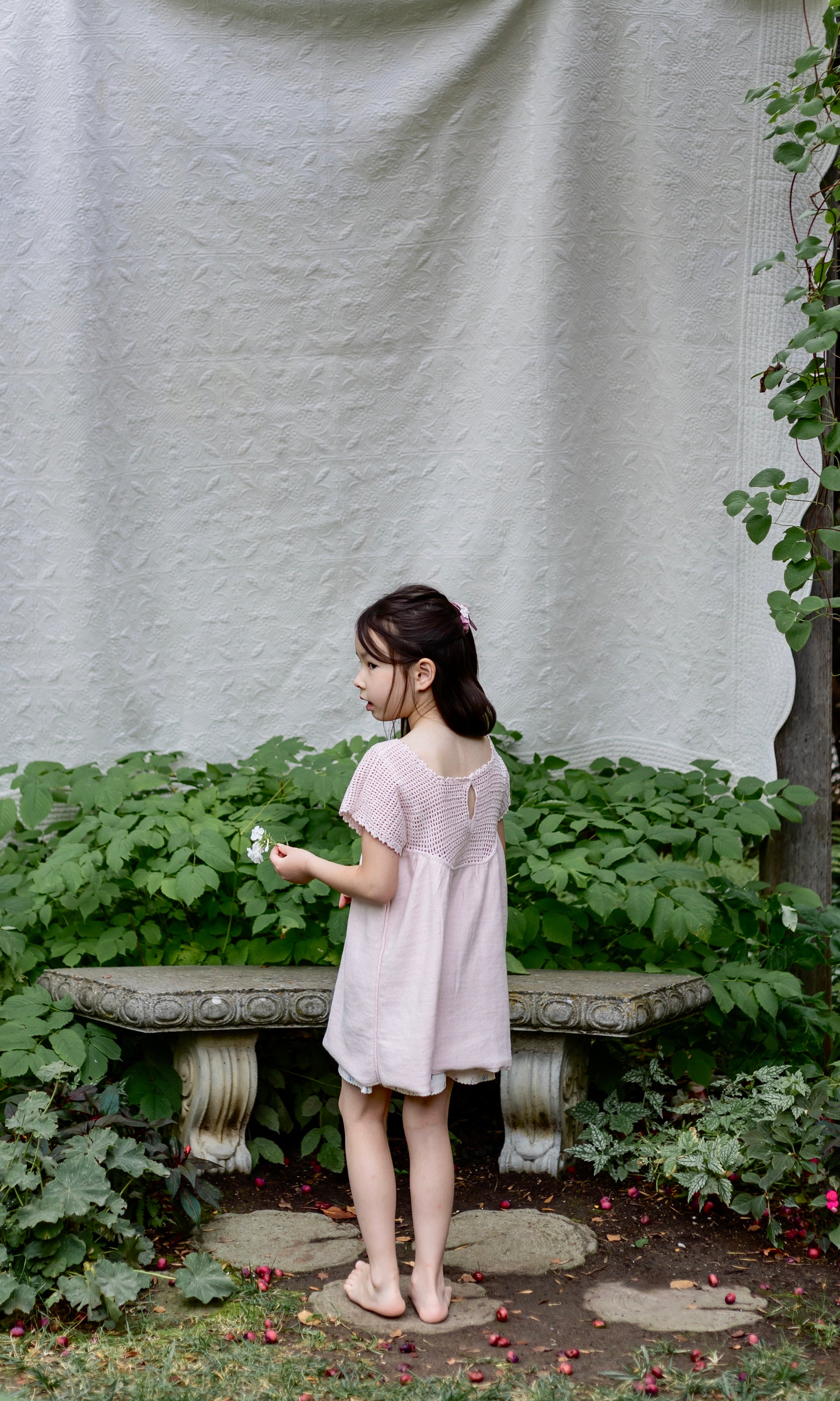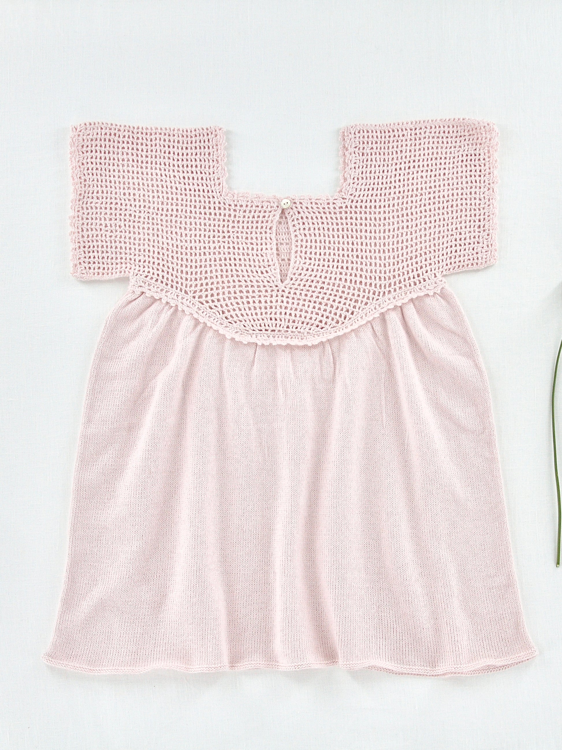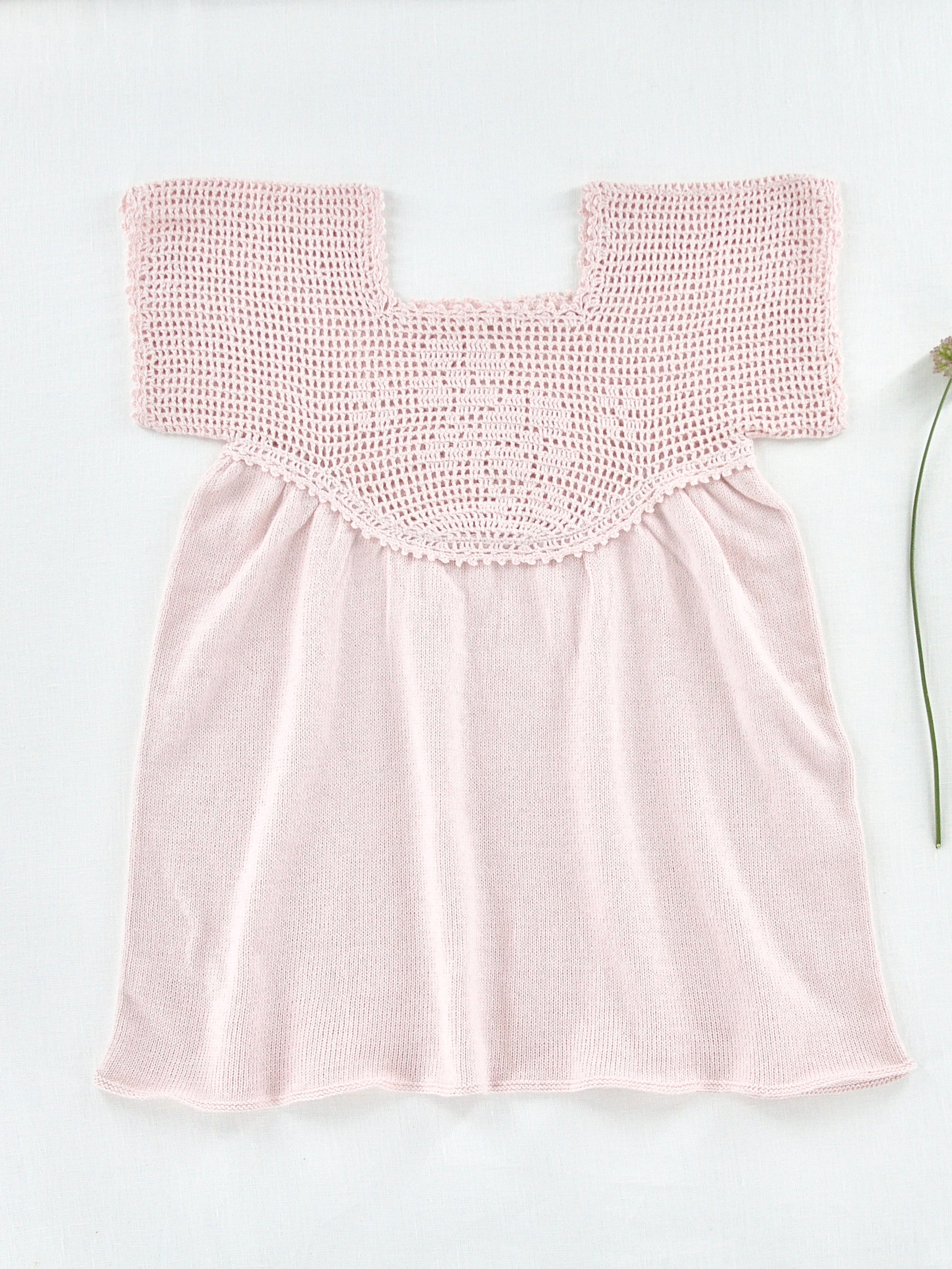 a breezy heirloom knit tunic with hand-crochet primrose motif on the yoke and delicate picot edging trim