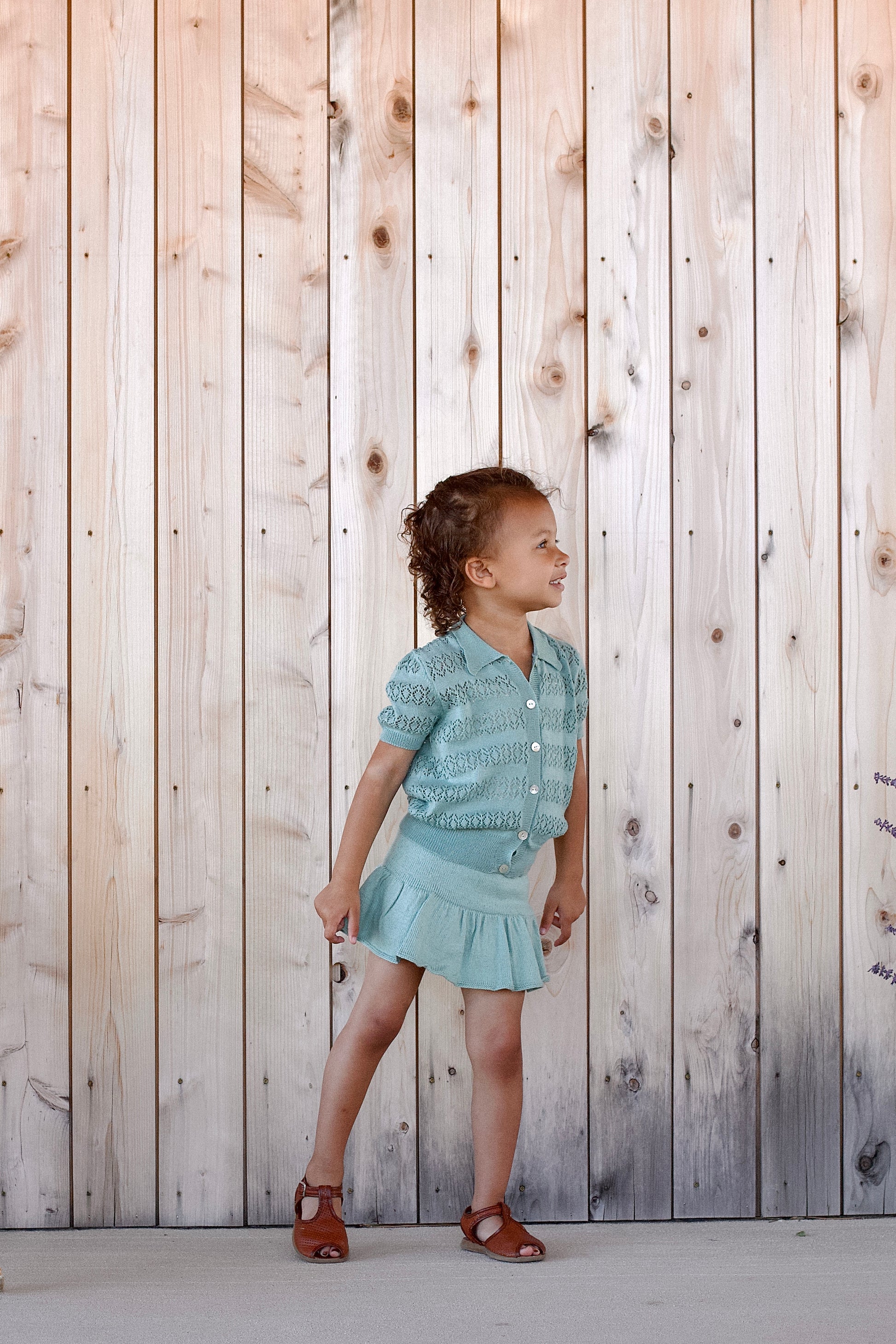 first model is 3 years old, 40 inches, 31 pounds, wearing size 6