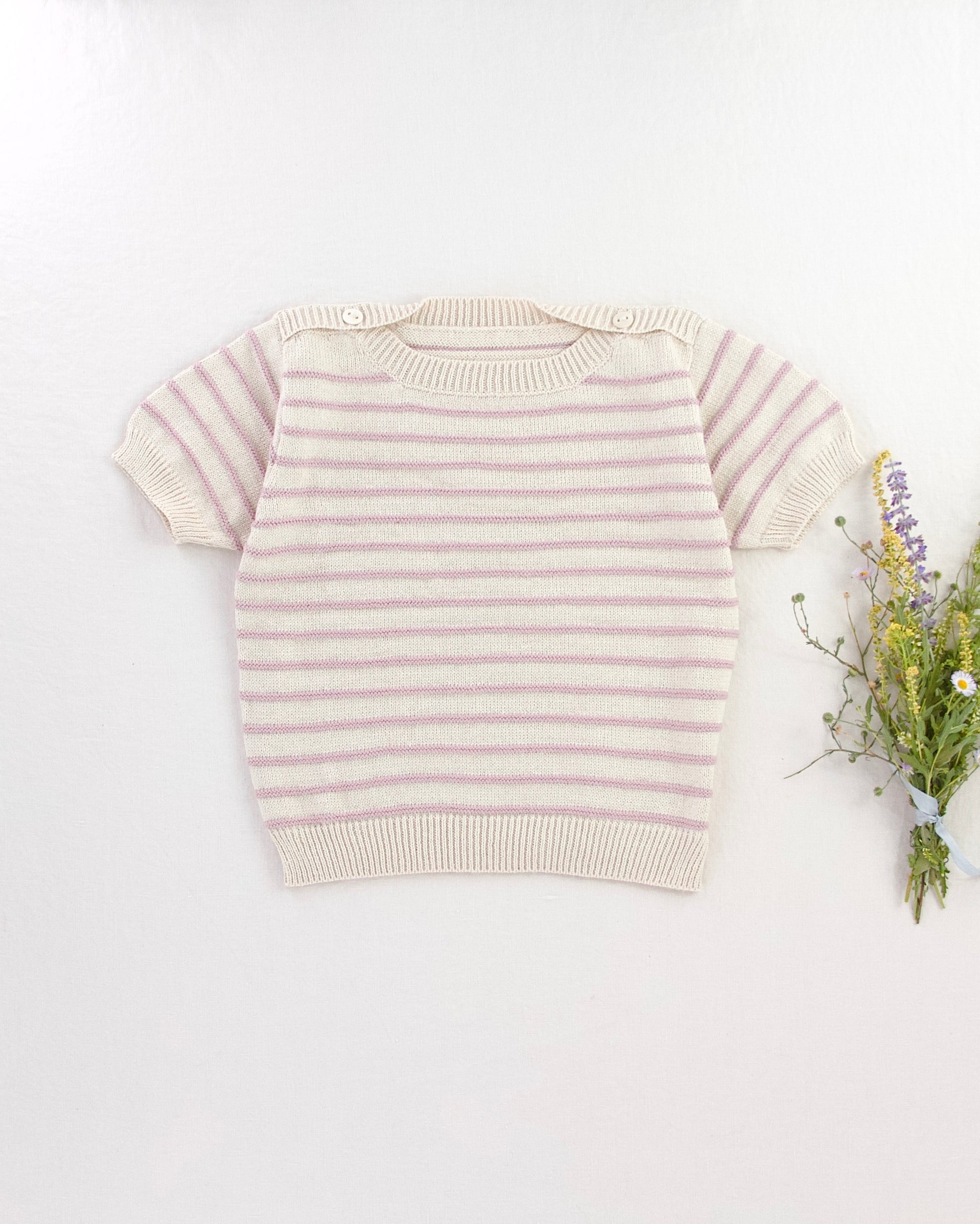 a fine knit cotton pullover with stripe detail and boatneck neckline . light weight cotton makes it suitable to wear even on the hottest days